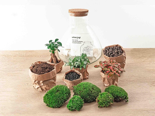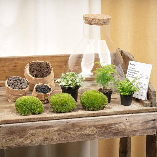 Terrariums zijn een stijlvolle en onderhoudsvriendelijke manier om groen toe te voegen aan je interieur, of het nu thuis is of op kantoor. Deze mini-ecosystemen zijn niet alleen een lust voor het oog, maar bieden ook rust en ontspanning dankzij hun natuurlijke uitstraling. Doordat een gesloten terrarium zichzelf in stand houdt via een slimme watercyclus, heb je er nauwelijks omkijken naar. Ideaal voor mensen zonder groene vingers. Bovendien nemen terrariums weinig ruimte in en passen ze perfect op een bureau, kast of vensterbank. Ze brengen sfeer en zijn een duurzaam cadeau of decoratiestuk waar je jarenlang plezier van hebt. Met hun unieke combinatie van eenvoud, schoonheid en functionaliteit zijn terrariums dé manier om op een moderne manier groen in je leven te brengen.